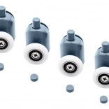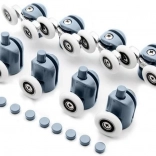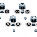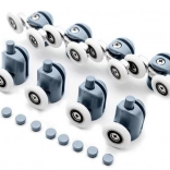 Zamenjajte obrabljene ali zataknjene vozičke in obnovite gladko in varno odpiranje pršnih vrat. Komplet vsebuje zgornja dvojna in spodnja posamezna, izklopno-odpirljiva kolesca za lažje vzdrževanje in čiščenje. Univerzalna zasnova s krogličnimi ležaji se prilagodi obliki vodilne letvice in preprečuje izskočenje vrat iz vodila.