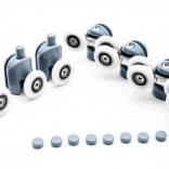 - 4× zgornja dvojna kolesca, 4× spodnja enojna kolesca (preklopna/odpenjalna), 8× pokrovčki