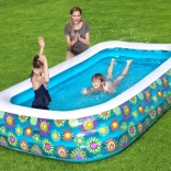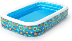 Družinski bazen BESTWAY z atraktivnim cvetličnim potiskom bo vaš vrt spremenil v poletno oazo. Enostavno se napihne, hitro napolni in je v hipu pripravljen za igro in počitek. Robusten okvir iz močnega PVC-ja (0,32 mm) prenese poletne radosti, hkrati pa ohranja prijetno udobje.