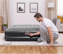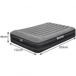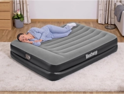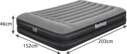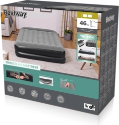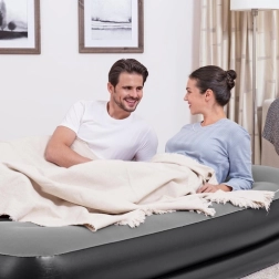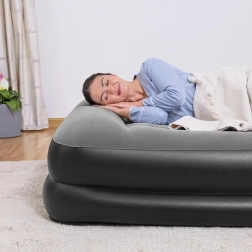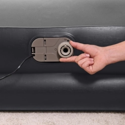 Uživajte v mirnem spancu zahvaljujoč povišani višini 46 cm, ki olajša vstajanje, ter čvrsti notranji konstrukciji Tritech™. Vgrajena električna črpalka 220–240 V hitro napihne in izprazni vzmetnico, varnostni ventil pa pospeši izpuščanje zraka. Velurjev površinski sloj je prijeten na dotik in odporen proti obrabi.