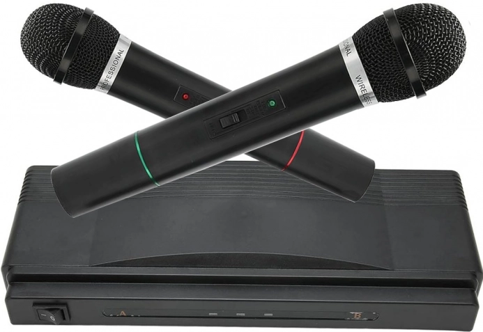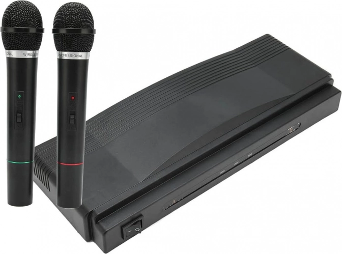 Priredite nepozabno zabavo doma ali na praznovanjih s kompletom, ki ponuja dva brezžična mikrofona in stabilno sprejemno postajo. Mikrofona delujeta na različnih frekvencah, zato ju je mogoče uporabljati skupaj ali posamezno z jasnim in glasnim zvokom.