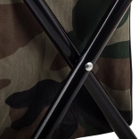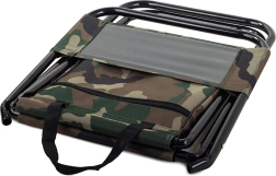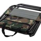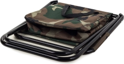 Zahvaljujoč čvrsti jekleni konstrukciji in vzdržljivi tkanini v kamuflažnem vzorcu je stol pripravljen za pogosto uporabo v naravi. Nizka teža in kompaktne dimenzije po zlaganju olajšajo transport na ribolov, v kamp, v gozd ali na plažo.