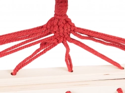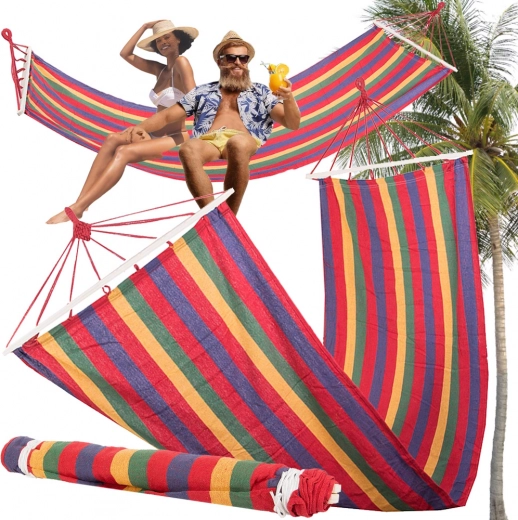 Ta udobna viseča mreža z lesenimi razpetnimi letvami ohranja ležalno površino stalno odprto, zato je vstopanje in izstopanje preprosto. Močna tkanina iz gostega bombaža z dodatkom poliestra je trpežna, zračna in prijetna za vsakodnevni počitek. Zahvaljujoč nosilnosti 150 kg nudi zanesljivost in stabilnost pri sprostitvi na prostem in v notranjih prostorih.