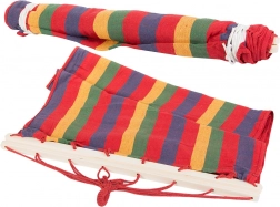 Montažo opravite v nekaj trenutkih – v paketu prejmete tudi dva pritrdilna vrvova. Črtast, živahen dizajn se prilega vsakemu vrtu ali terasi, v zloženem stanju pa zavzame minimalno prostora. Idealno za branje, dremež ali rahlo guganje po napornem dnevu.