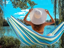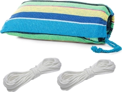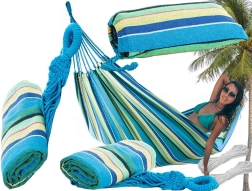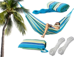 Idealna izbira za vrt, teraso, balkon in kampiranje. Viseča mreža se hitro obesi med drevesa ali na stojalo ter nudi prijeten počitek v vročih dneh. Material je zračen, odporen in prijeten na dotik, zato je odličen za vsakodnevno sprostitev.