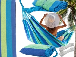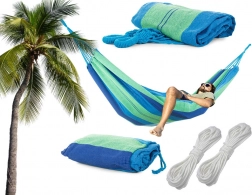 Široka ležeča površina nudi največje udobje za dve osebi, medtem ko močne vrvi in kakovostni šivi zagotavljajo stabilnost in varnost. Po zlaganju zavzame zelo malo prostora, z vrečko pa jo zlahka vzamete na piknik, kampiranje ali dopust.