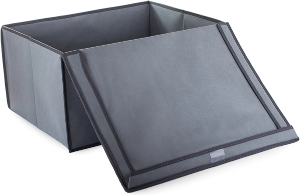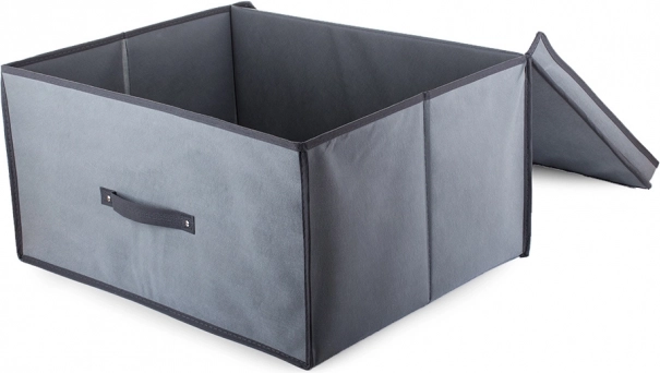 Univerzalna škatla s preklopom je idealna rešitev za shranjevanje različnih stvari v gospodinjstvu. Primerna za obleke, odeje, knjige, igrače, čevlje in druge predmete, ki jih potrebujete na dosegu roke.