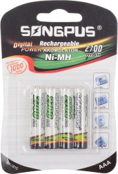 Praktičen komplet vsebuje 4 polnilne baterije AAA (R3) z visoko kapaciteto, idealne za daljinske upravljalnike, fotoaparate, svetilke, MP3 predvajalnike in druge naprave. Baterije ponujajo hitro polnjenje, brez spominskega učinka in so dobavljene v originalni embalaži.