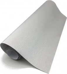 Preoblikujte videz vašega avtomobila, pohištva ali katere koli druge površine z našo samolepilno dekorativno folijo. Ta siva folija z brušeno strukturo prinaša moden in eleganten videz, ki vašim predmetom doda novo dimenzijo. Je termoplastična in se zlahka prilagodi različnim oblikam ter površinam, kar omogoča ustvarjalno in preprosto aplikacijo.