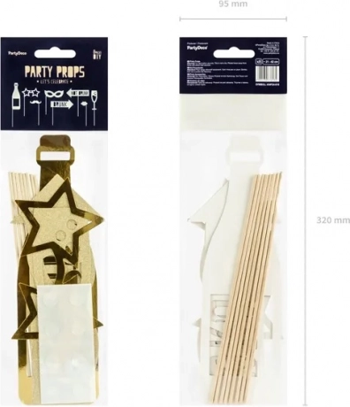 Ustvarite nepozabne fotografije z rojstnih dni, obletnic ali poslovnih zabav. Set sestavlja 8 zabavnih rekvizitov v moderni zlati izvedbi, ki se odlično ujemajo s praznično dekoracijo in vašim posnetkom dodajo pridih šarma.