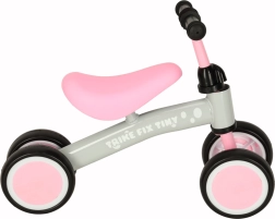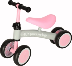 Lahek in stabilen poganjalec TRIKE FIX TINY s štirikolesno zasnovo je idealen za prve vožnje otrok od 2. leta dalje. Ponuja nastavljivo krmilo, udoben oblazinjen sedež in nedrseče gumijaste ročaje za varen oprijem. Rožnato‑siva zasnova otroke motivira k gibanju in naravno razvija ravnotežje in koordinacijo.