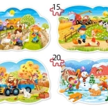 Komplet vsebuje štiri samostojne sestavljanke z 8, 12, 15 in 20 koščki – idealno za rast skupaj z otrokovo zmožnostjo in veselje ob vsakem uspehu.