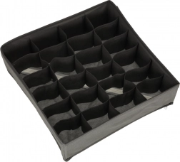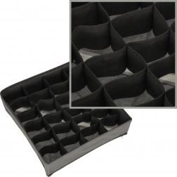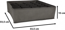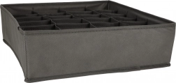 Praktičen organizator za predal spremeni nered v pregleden sistem. Zahvaljujoč 24 samostojnim prekatom takoj najdete, kar iščete – brez premetavanja kupov perila. Nevsiljiva siva barva in diskreten rob se podata v vsako spalnico ali garderobo.