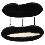 U-oblika vzglavnika objame tilnik in ohranja glavo v pravilnem položaju, kar izboljša udobje tudi pri dolgotrajnem sedenju.