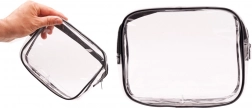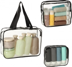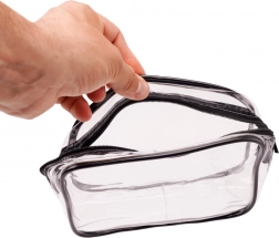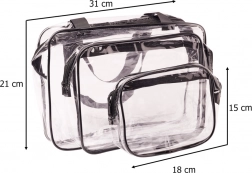 Ohranite red na poti in doma s kompletom treh prozornih kozmetičnih organizatorjev. Vodoodbojni PVC ščiti vsebino pred vlago in morebitnim iztekanjem tekočin, medtem ko trpežne zadrge vse varno zaprejo. Zaradi prozorne izvedbe takoj vidite vsebino in zlahka opravite varnostni pregled na letališču.