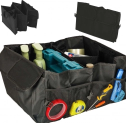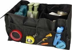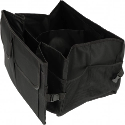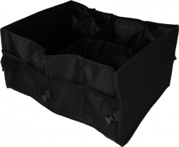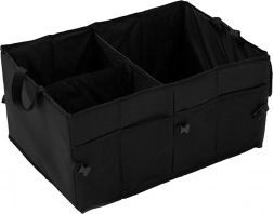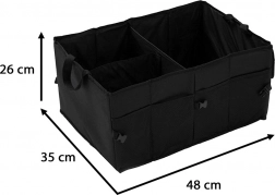 Izdelan je iz odpornega poliestra, ki dobro prenaša vsakodnevno uporabo. Stranske sponke omogočajo prilagoditev širine ali hitro fiksiranje oblike. Zahvaljujoč čvrstim ročajem organizator zlahka prenesete skupaj z vsebino neposredno iz prtljažnika v hišo.