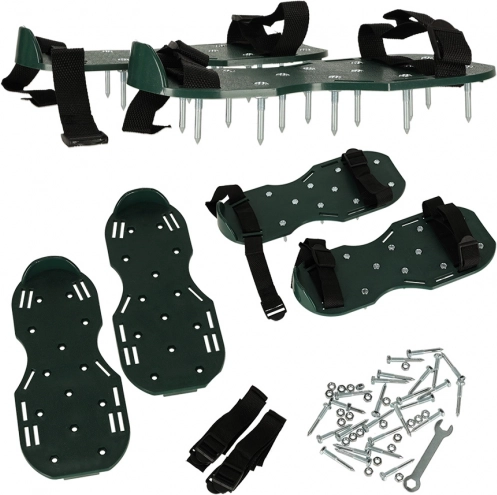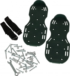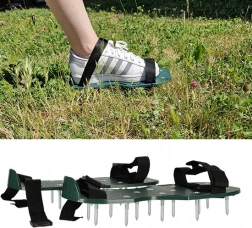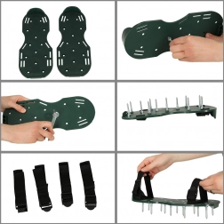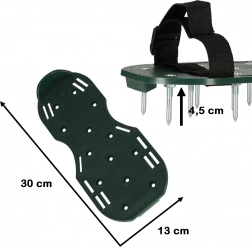 Preprost način do lepo zelenega in odpornega travnika. Čevlje s konicami nadenete na svoje delovne čevlje, zategnete štiri nastavljive trakove in se preprosto sprehodite po vrtu. Aeracija travnika izboljša vpijanje vode, zmanjšuje zbitost tal in učinkovito podpira delovanje gnojil.