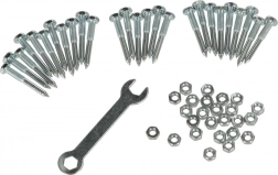 - 1 par prezračevalnih čevljev za obutev, 26 kosov vijakov–konic, 26 kosov matic, 4 trakovi, ključ