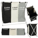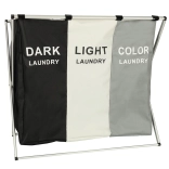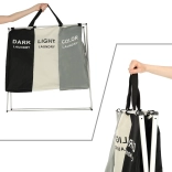 Praktičen trikomorni koš za perilo s skupno kapaciteto 135 l olajša vsakodnevno ločevanje na temno, svetlo in barvito. Zahvaljujoč čvrsti kovinski konstrukciji, trpežni tkanini Oxford 600D in zložljivemu okvirju prihrani prostor ter ohranja vašo kopalnico ali garderobo v popolnem redu.