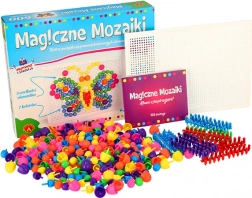Vstopite v svet ustvarjanja z Magičnimi mozaikami, kjer domišljija postane resničnost. Na priloženi plošči z mnogo odprtinami lahko nameščate barvne koščke različnih velikosti ter ustvarjate čudovite vzorce in podobe. Ko dokončate eno ilustracijo, preprosto odstranite koščke in začnite ustvarjati nekaj novega.