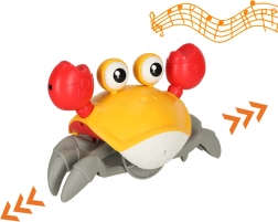 Rak zna tudi predvajati melodije za stimulacijo sluha (možnost izklopa). Gladke, zaobljene oblike in kakovostna plastika zagotavljajo varno igro. Napajanje preko vgrajene 3,7 V baterije in enostavno polnjenje prek USB kabla omogočata vsakodnevno zabavo.