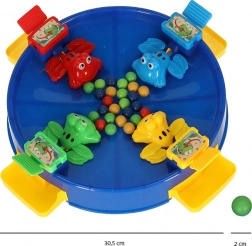 Skakajoče žabe so popolna spretnostna igra za otroke in odrasle. Po razporeditvi kroglic na sredino igralne površine poskušajte s pomočjo ročic na žabicah ujeti čim več kroglic. Po koncu igre preštejte zbrane kroglice in zmaga tisti, ki jih ima največ.