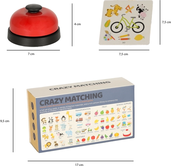 Škatla vsebuje 54 kart in rdeč zvonec, ki igri doda dinamiko in zabavo. Dizajn kart z barvitimi ilustracijami bo navdušil otroke in odrasle ter izboljšal njihove reflekse in pozornost.