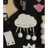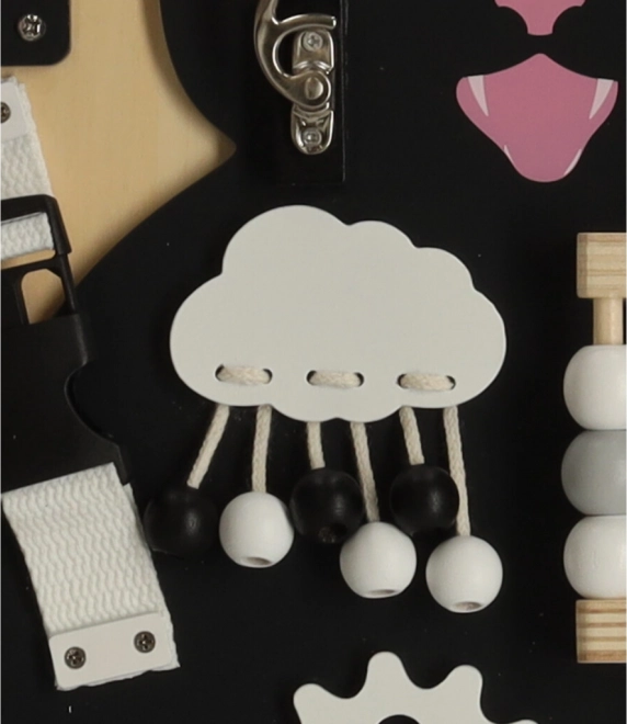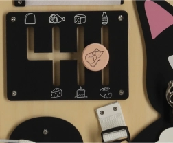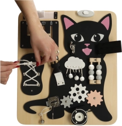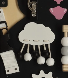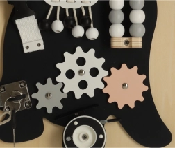 Zaradi privlačnega dizajna in raznolikih zvokov tabla ohranja pozornost tudi najbolj raztresenih otrok. Nauk se z njo vezanje vezalk, zapenjanje sponk in uporabo ključev. Dolgotrajni materiali zagotavljajo dolgo življenjsko dobo tudi pri pogosti uporabi.