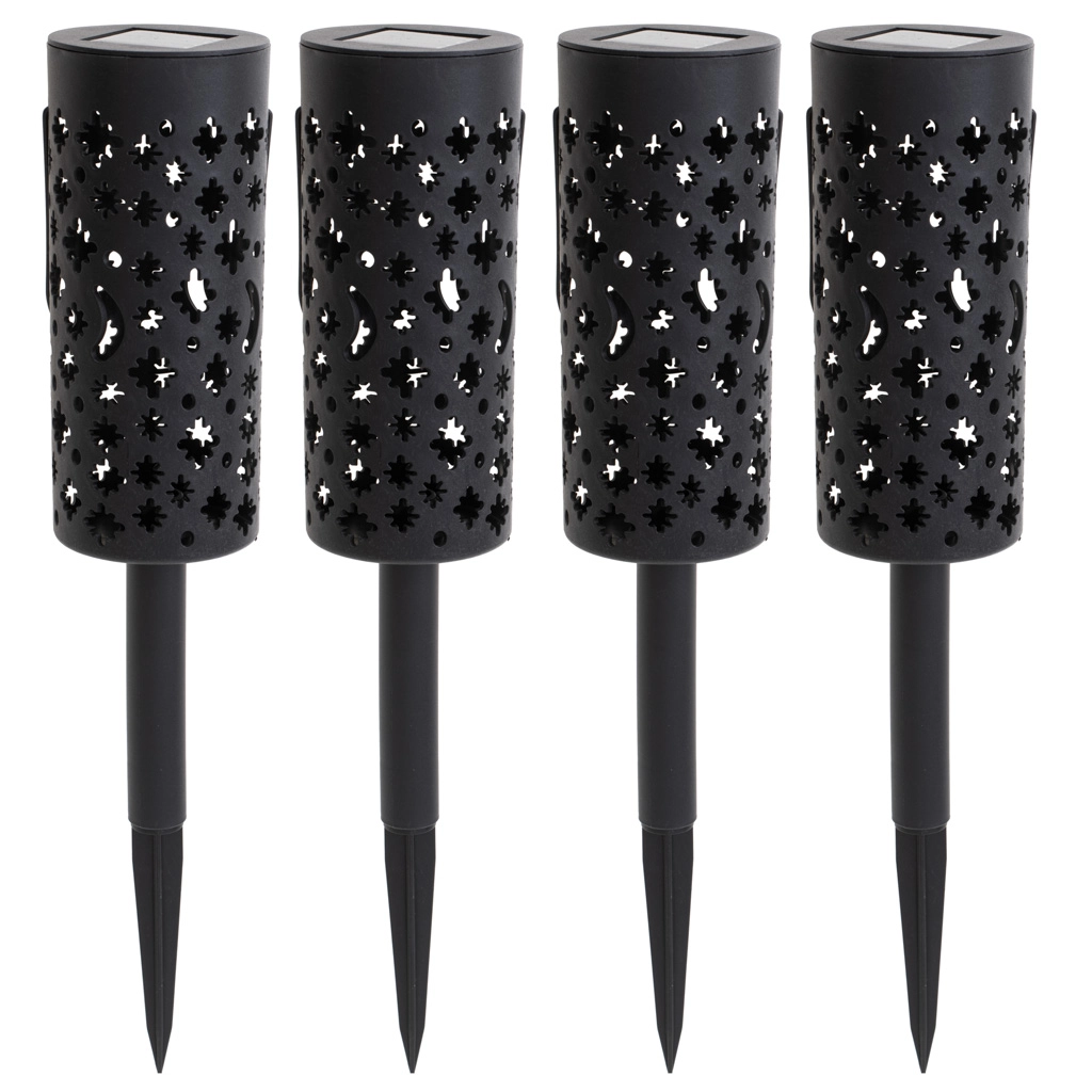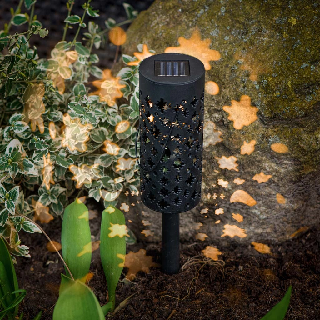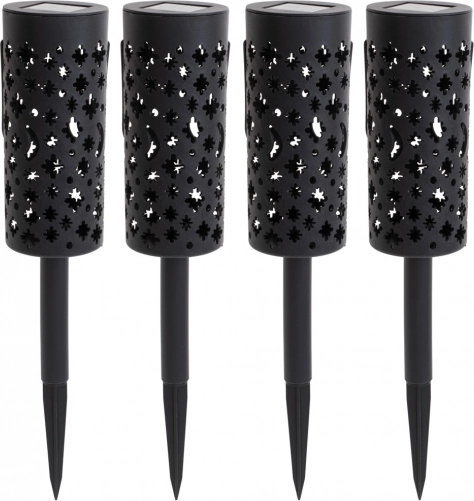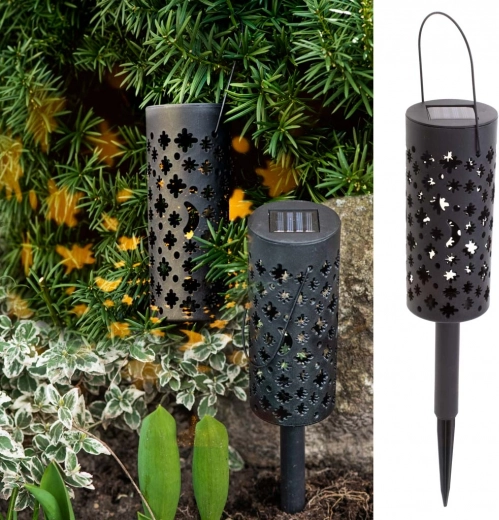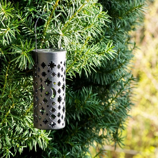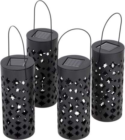 Te sončne vrtne laterne le zapičite v tla ali obesite na vejo in jih čez dan pustite, da se polnijo na soncu. Vgrajeni akumulator in senzor somraka poskrbita, da se luči samodejno prižgejo točno takrat, ko jih potrebujete. Dekorativna perforacija po prižigu ustvari efektne zvezdne in lunine motive.
