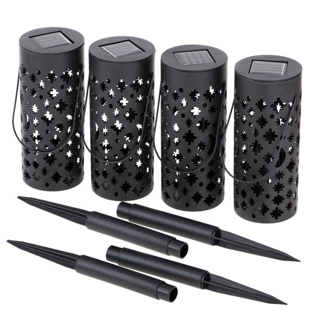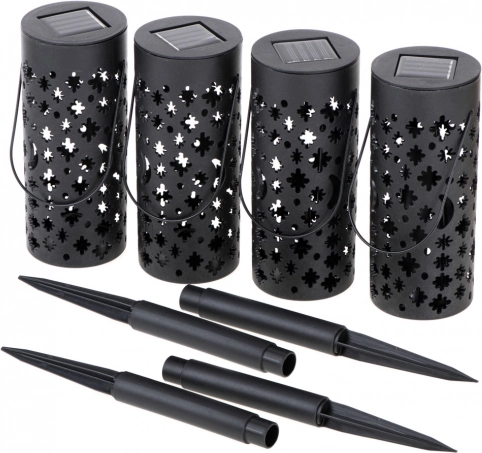 sončne vrtne laterne z dekorativnimi izrezi, LED, s senzorjem somraka, za zapičenje in obešanje, 4 kosi