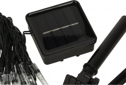 Namestitev je preprosta – panel lahko odložite na polico ali ograjo, ali pa ga s priloženim zemeljskim količkom zapičite v trato. 6,5 m dolga veriga s 30 LED elegantno okrasi pergolo, drevesa in paviljon, IP65 pa zagotavlja odpornost na dež in vlago.