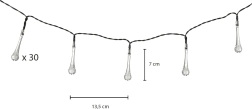30 LED v obliki kapljic oddaja prijetno toplo svetlobo, ki poudari kotičke vrta, terase in balkone ter ustvari čarobno večerno scenografijo.