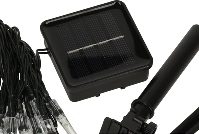Z 30 LED diodami s hladno belo svetlobo izstopa dekorativni učinek tako ponoči kot podnevi. Veriga je odporna na vremenske vplive (IP65), zato je primerna za balkon, pergolo, teraso ter med grmi in drevesi. V paketu najdete tudi talni klin za enostavno namestitev panela na vrtu.
