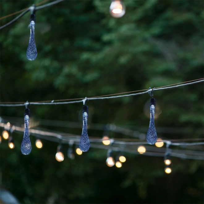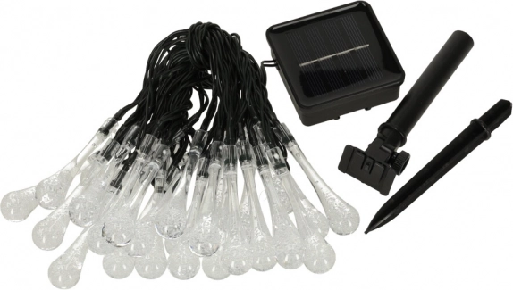 Ustvarite prijetno vzdušje na balkonu, terasi ali na vrtu s sončno svetlobno verigo s kapljičnimi žarnicami. Veriga se polni s soncem in se po mraku zahvaljujoč senzorju samodejno prižge. Ponuja 30 varčnih LED na 6,5 m kabla, 8 svetlobnih načinov, hladno belo svetlobo in vodoodpornost IP65 za celoletno zunanjo uporabo.