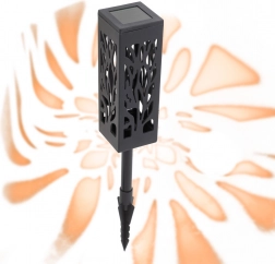 Elegantne solarne svetilke za vrt, teraso ali balkon združujejo sodoben dizajn in okolju prijazno osvetlitev. Ažur dekor na ohišju po mraku ustvari impresivne svetlobne učinke, ki poudarijo poti, grede in robove teras. Namestitev je trenutna – preprosto jih zabadete v zemljo.
