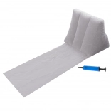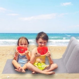 Ta siva plažna podloga združuje udobje ležalnika s praktičnostjo zložljive podloge. Napenljiv naslon občutno polepša branje knjige, sončenje in sprostitev na plaži, v parku ali na vrtu. Po izpustu zraka zavzame malo prostora in je zelo lahka, zato se prilega vsaki plažni torbi.