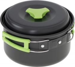Povečajte udobje svojega kampiranja s setom turistične posode. Zaradi lahke in trpežne aluminijaste konstrukcije lahko enostavno segrejete vodo ali pripravite okusne jedi v naravi. Zložljivi ročaji omogočajo enostavno rokovanje, in ko končate, preprosto zložite posodo v praktično torbo.