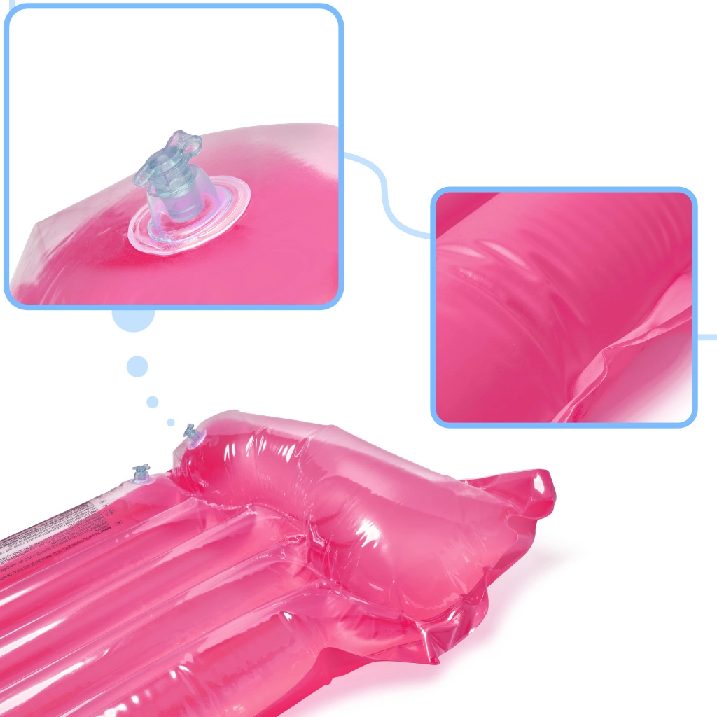 Lahka, kompaktna in hkrati stabilna – takšna je napihljiva blazina Bestway 44013. Zahvaljujoč praktični zasnovi z dvignjenim vzglavnikom si privoščite največje udobje, ne glede na to, ali se nežno ziblje na vodni gladini ali uživate v sončnih žarkih. Sveža rožnata barva doda vašemu poletnemu repertoarju kanček stila.