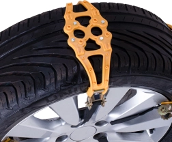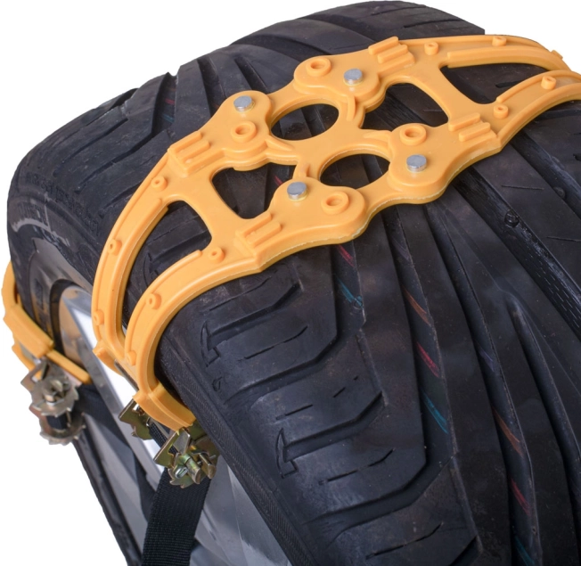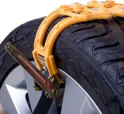 Namestitev opravite v nekaj minutah – trak napeljete skozi platišče, zategnete sponko in ste pripravljeni na pot. Idealna rešitev za nenadno sneženje ali poledico.
