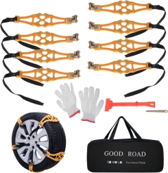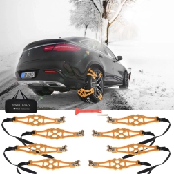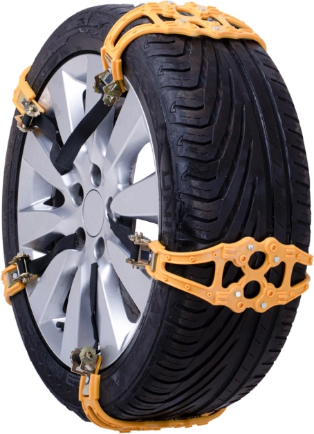 Ti univerzalni snežni trakovi so odlična alternativa klasičnim verigam – namestite jih hitreje, udobneje in čisteje. Namenjeni so vožnji po snegu in poledenelih cestah, kjer izboljšajo oprijem in stabilnost. Celoten komplet je izdelan iz kakovostnega silikona z kovinskimi protidrsnimi elementi za dolgo življenjsko dobo.