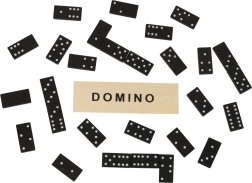 Črno domino z belimi pikami (0–6) zagotavlja odlično berljivost števil in tekoč potek igre za otroke in odrasle.
