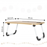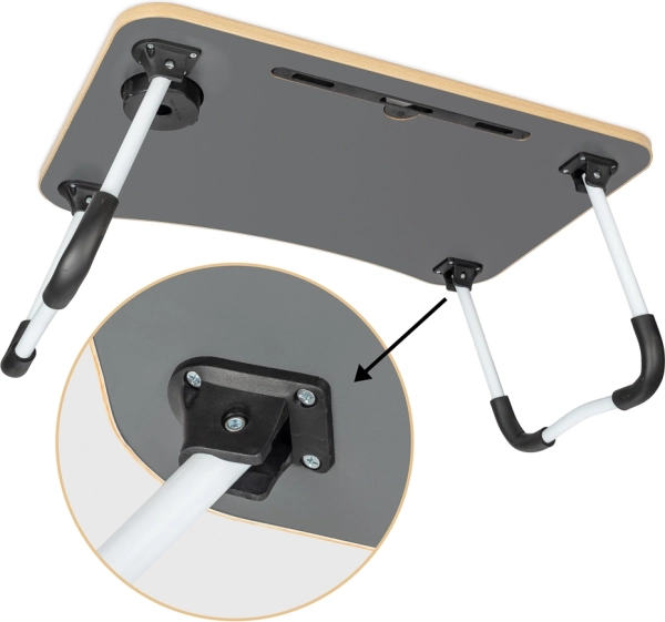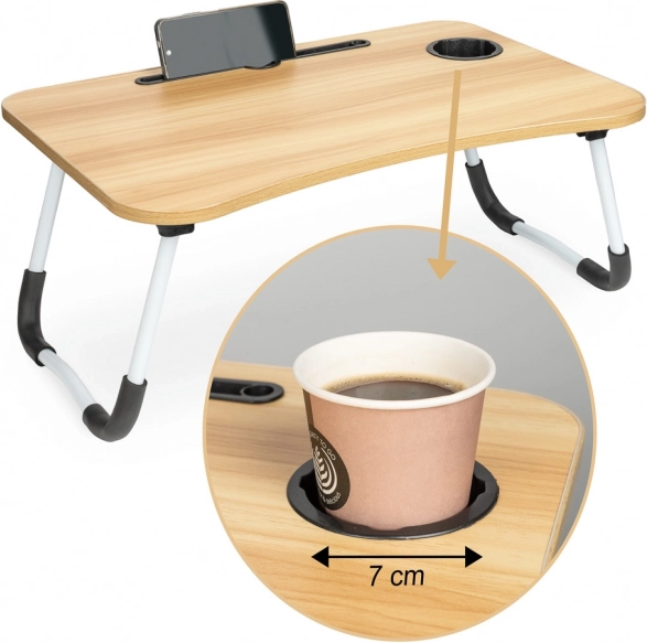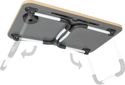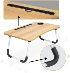 Miza je opremljena z režo za tablico ali telefon ter odprtino za kable, kar povečuje njeno praktičnost. Če iščete popolnega pomočnika za udobno delo z katere koli lokacije, je ta zložljiva miza za prenosnik prava izbira.