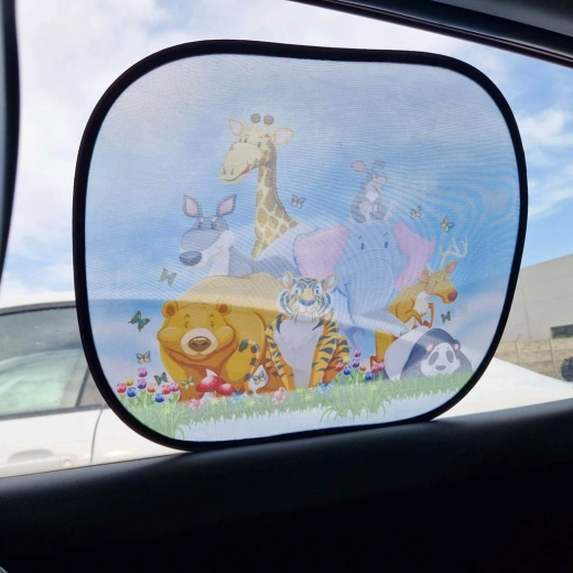 Senčnica je izdelana iz črne polprosojne mrežice z igrivim motivom medveda, z notranje strani pa je opremljena s prozorno statično folijo. Namestitev je hitra in neinvazivna – dovolj je, da jo prislonite na suho, čisto in razmaščeno steklo ter zgladite. Enako enostavno jo tudi odstranite in shranite v priloženo tekstilno vrečko.