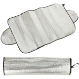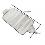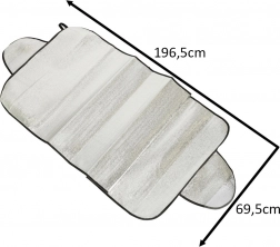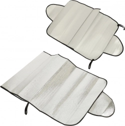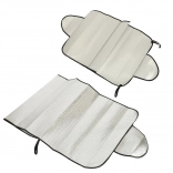 Ta praktična zaščitna pregrada za sprednje ali zadnje steklo zanesljivo zmanjšuje pregrevanje notranjosti poleti, pozimi pa preprečuje nabiranje ivja in snega. Reflektivna površina odbija sončne žarke, medtem ko v hladnih dneh termoizolacijska plast deluje kot pregrada proti mrazu.