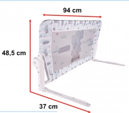 Enostavna montaža in uporaba – montaža poteka z vstavljanjem nogic pod vzmetnico. Zahvaljujoč zložljivim tečajem ograjo z enim pritiskom zložite tako, da ne sega nad raven vzmetnice, ko je ne potrebujete.