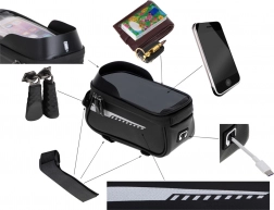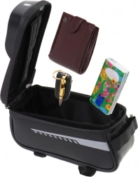 Njene kompaktne dimenzije med vožnjo ne bodo ovirale. Žep je zaprt z zadrgo, kar zagotavlja, da nič ne pade ven, tudi pri ostrih zavojih. Montaža torbe je zagotovljena s tremi suhomontažnimi trakovi: en za krmilo in dva za okvir kolesa, kar zagotavlja popolno stabilnost med vožnjo. Ustreza kateremukoli modelu kolesa, ne glede na znamko.