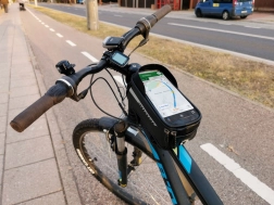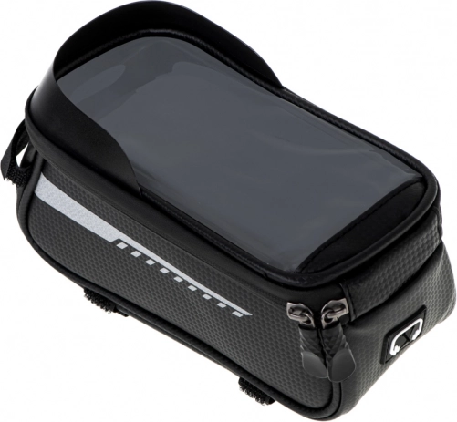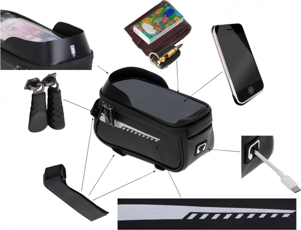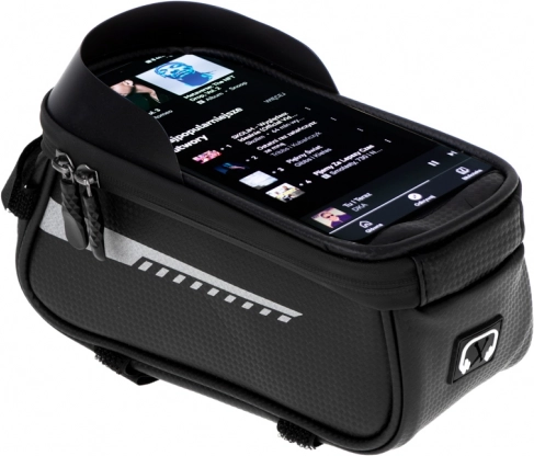 Ta vodoodporna kolesarska torba je popoln dodatek za vsakega kolesarja, ki išče funkcionalno in trpežno rešitev za dolge vožnje. Opremljena je s posebnim prostorom za telefon, tako da ga lahko enostavno uporabljate kot navigacijo ali glasbeni predvajalnik med vožnjo. Držalo je zasnovano tako, da telefon ostane viden in dostopen skozi prozorno in vodoodporno okence.