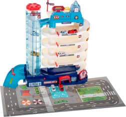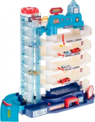 Ta realistična parkirna hiša spremeni otroško sobo v živahno mesto. Z samodejnim dvigalom popeljete avtomobilčke vse do vrhnjih nadstropij, po spiralnih rampah pa zdrsijo navzdol. Utripajoče lučke in vesela melodija iz stolpa z uro dodajo igri vzdušje – zvok je mogoče ločeno vklopiti in izklopiti.