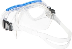 Dva velika okenca in mehak silikonski rob zagotavljata široko vidno polje in zanesljivo tesnjenje brez neprijetnega pritiska.