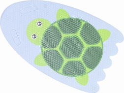 Ljubek motiv želve na svetlo modrem ozadju spremeni trening v igro in pomaga otrokom premagati strah pred vodo.